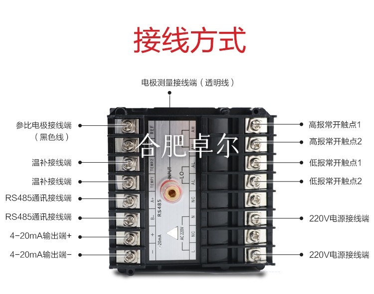 - 具備PH/ORP測(cè)量、溫度測(cè)量、上下限控制、變送輸出、RS485通訊功能